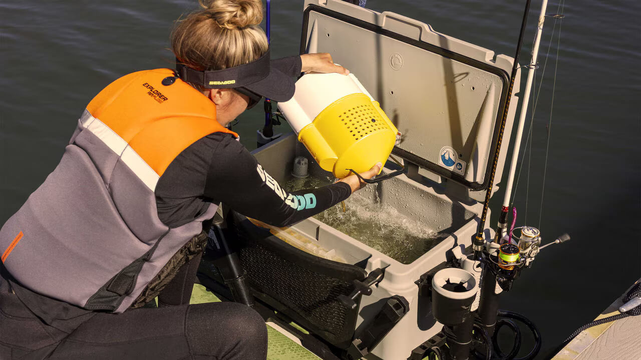 Το LinQ Fishing Cooler 51 λίτρων μπορεί να μετατραπεί σε livewell σε δευτερόλεπτα, διατηρώντας τα ψάρια όχι απλά φρέσκα αλλά ζωντανά. Μια ενσωματωμένη αντλία τροφοδοτεί συνεχώς τη δεξαμενή με φρέσκο νερό, διατηρώντας ψάρια και δολώματα ζωντανά όλη μέρα.